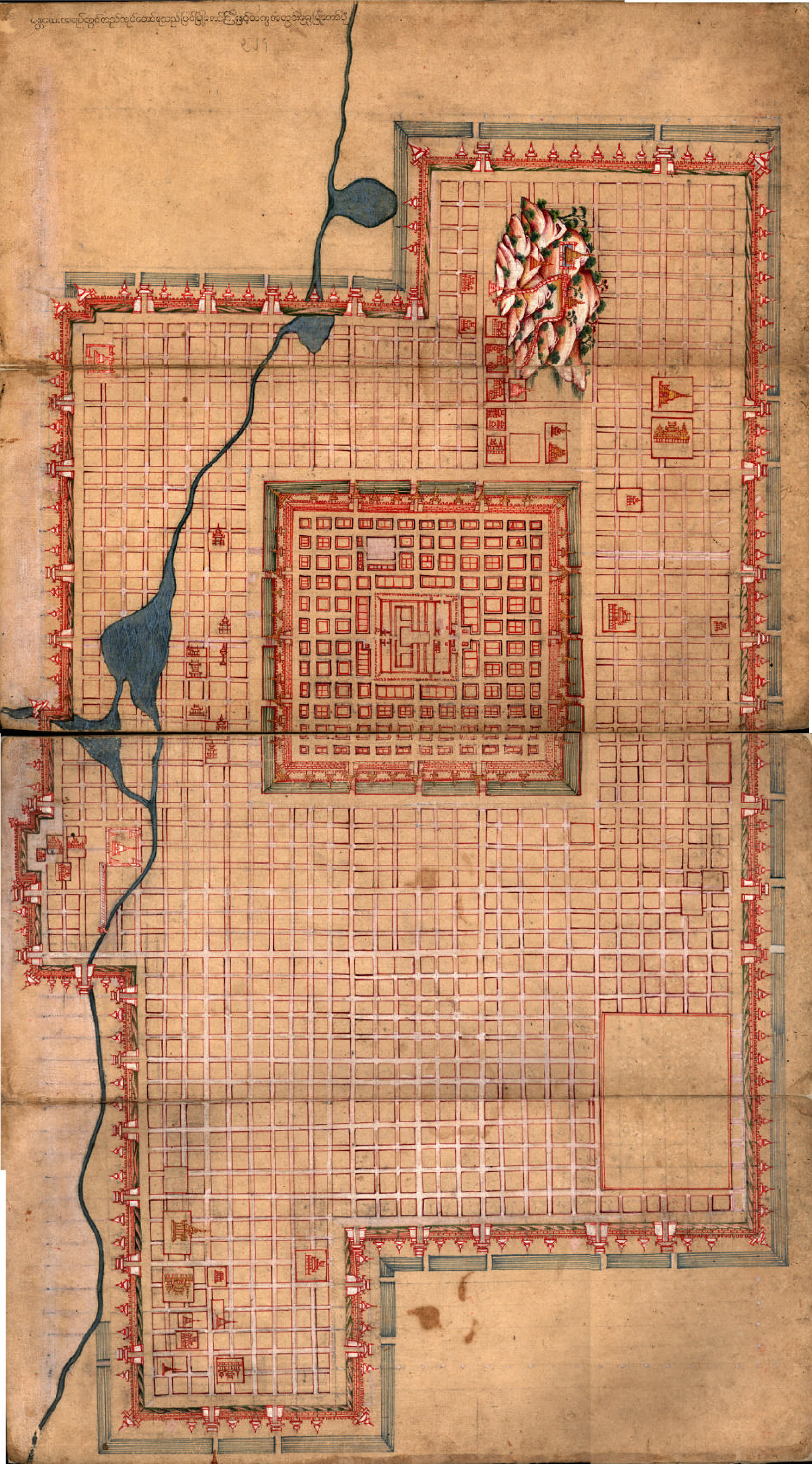 In the middle of 18th century, when king Mindon shifted his royal city to Mandalay, a new site apart from the old city of Amarapura, he made it an example of traditional town planning. He defined the four sides of the golden city and marked the western boundary as the Irrawaddy River. Therefore, Chanthargyi stupa and its monastic complex were situated within the boundaries of the golden city. Moreover, King Mindon divided Mandalay City into four sections, designing grid patterns according to the cardinal directions, and defined the quarters around the city. Chanthargyi monastic complex and its surrounding neighborhood including Thingazar Chaung were defined as Thrimalar west quarter. Some historical sources show that some of the king’s wives along with his servants lived in this quarter.