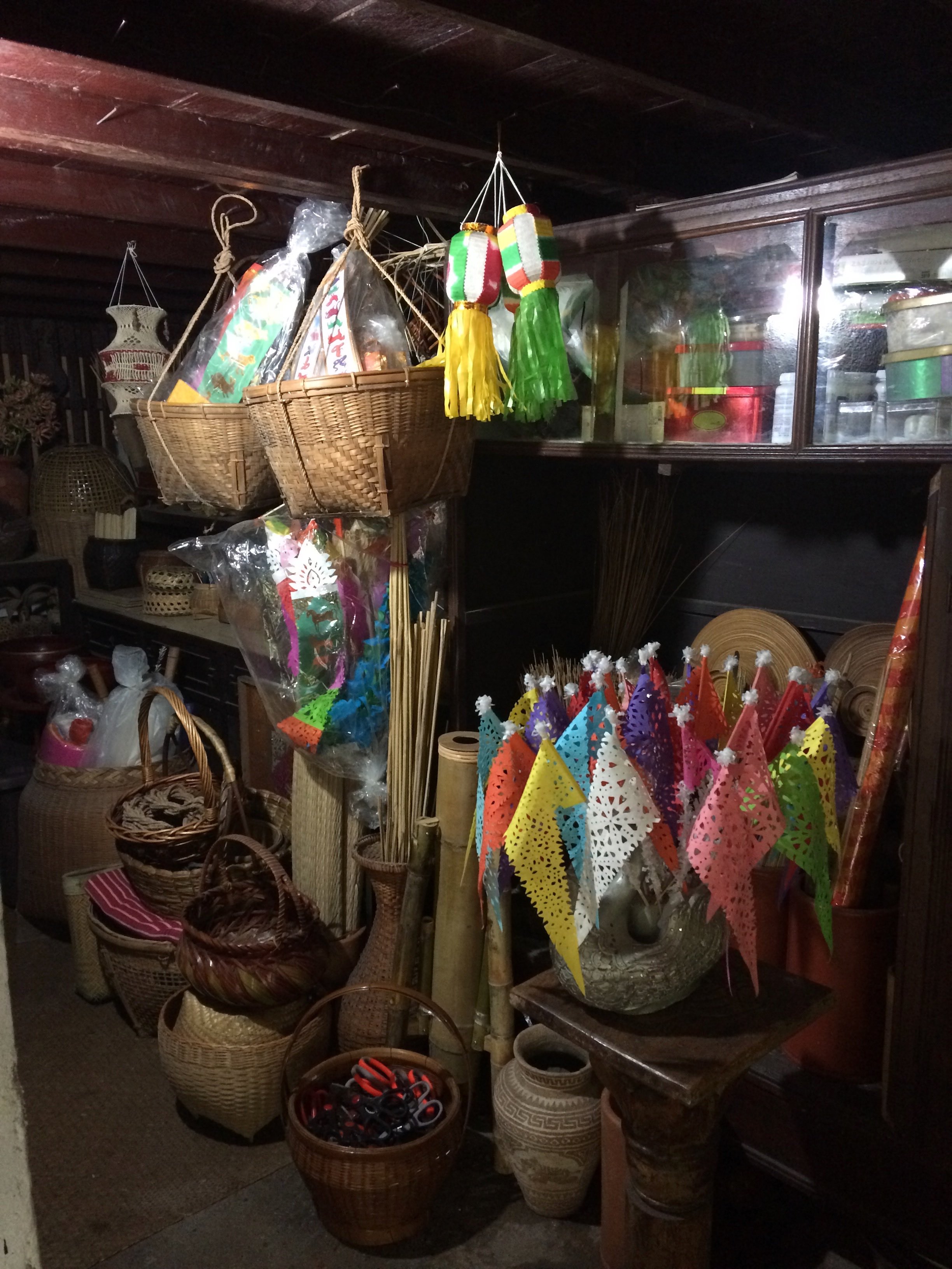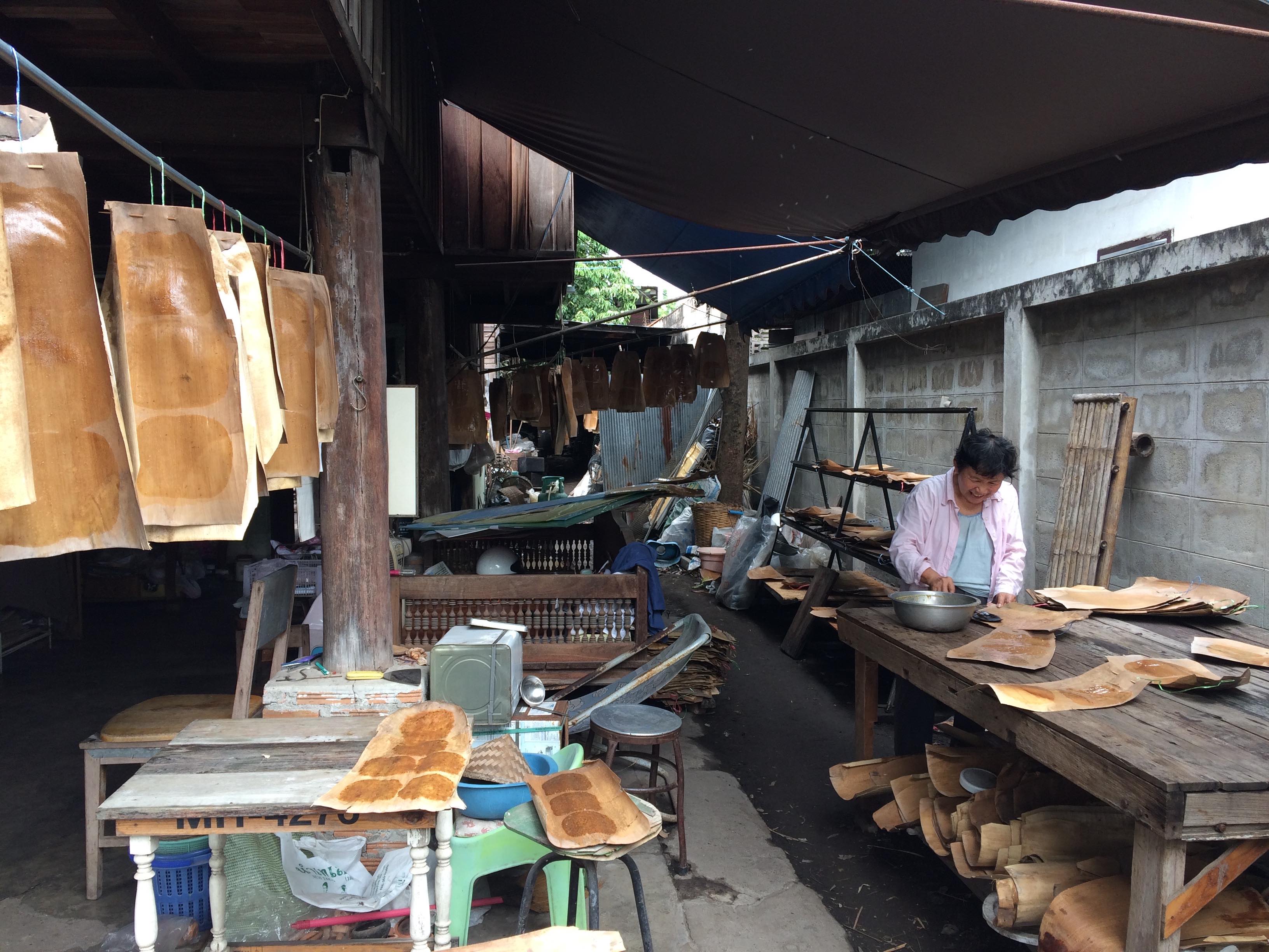 The working space is also a significant place of Ban Wua Lai’s residents. Many of them use the space underneath their houses on stilts as a work area. The rich and calm environment of Wua Lai has inspired local artisans to produce the household objects and meticulous works of art for local rituals and religious ceremonies (please see the post In Conversation with a Master of Silverware in Wua Lai). Wua Lai is well known for silversmith, but after doing the surveys, we found others craft activities which also participate in the dynamic of local livelihoods.