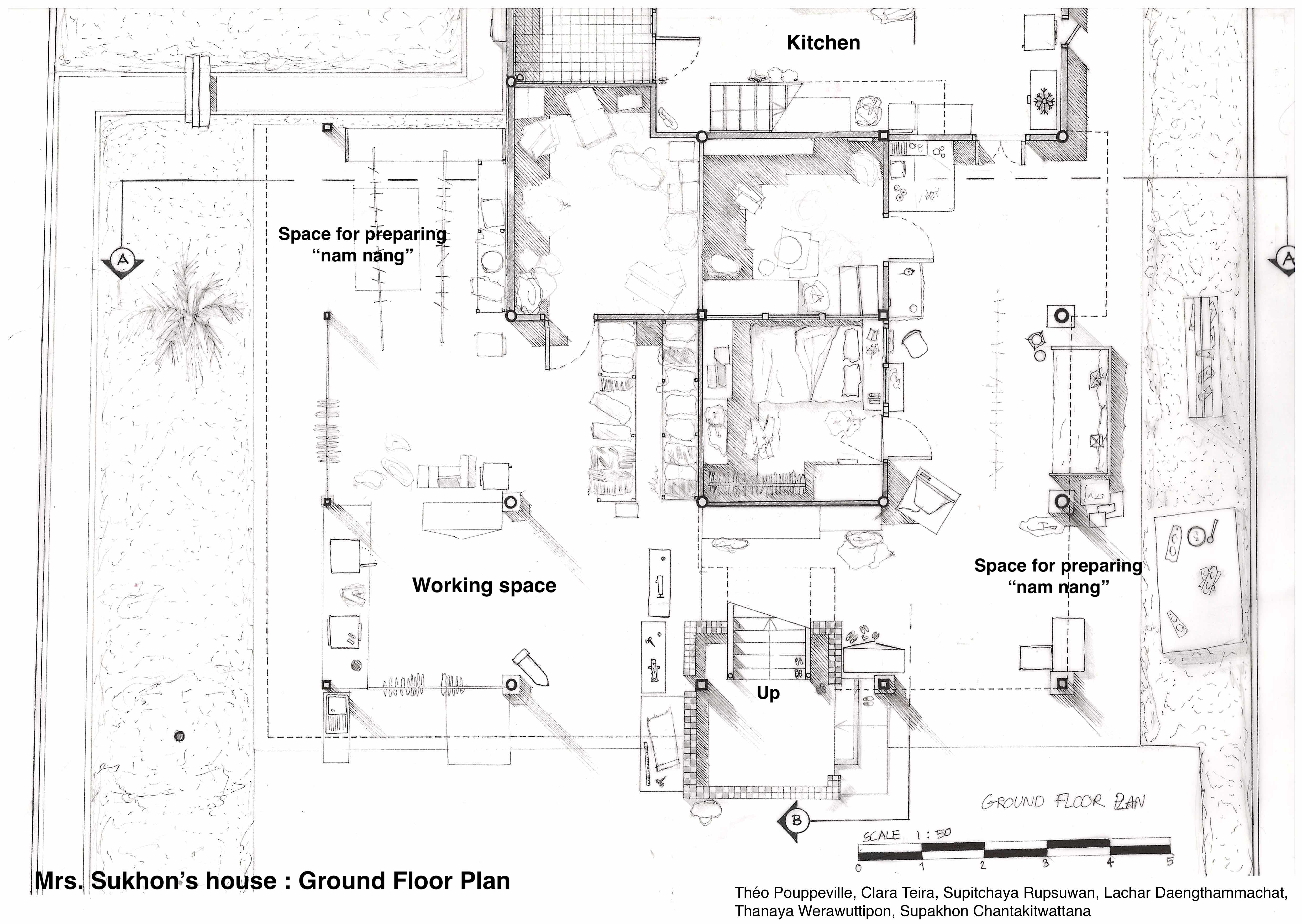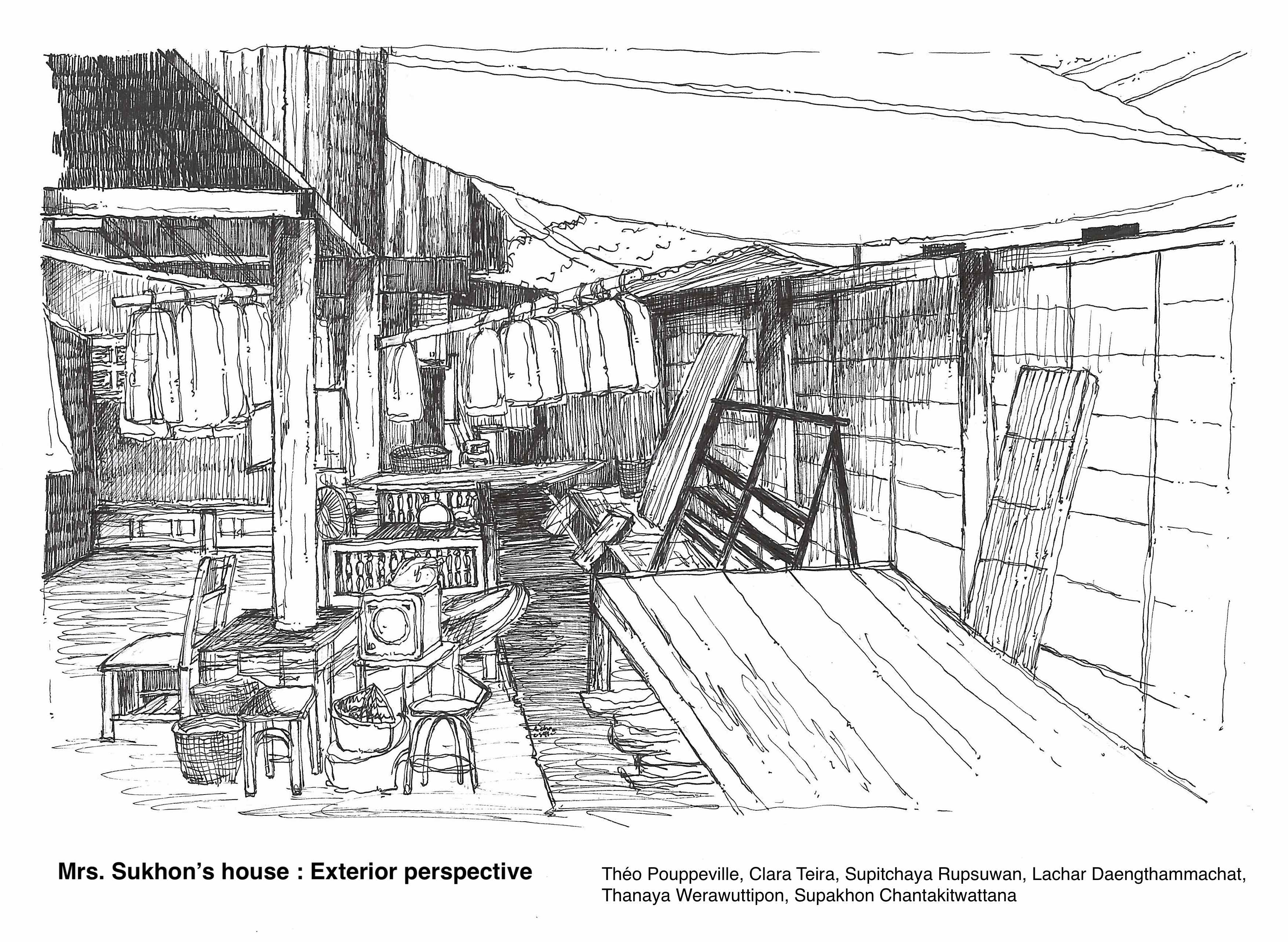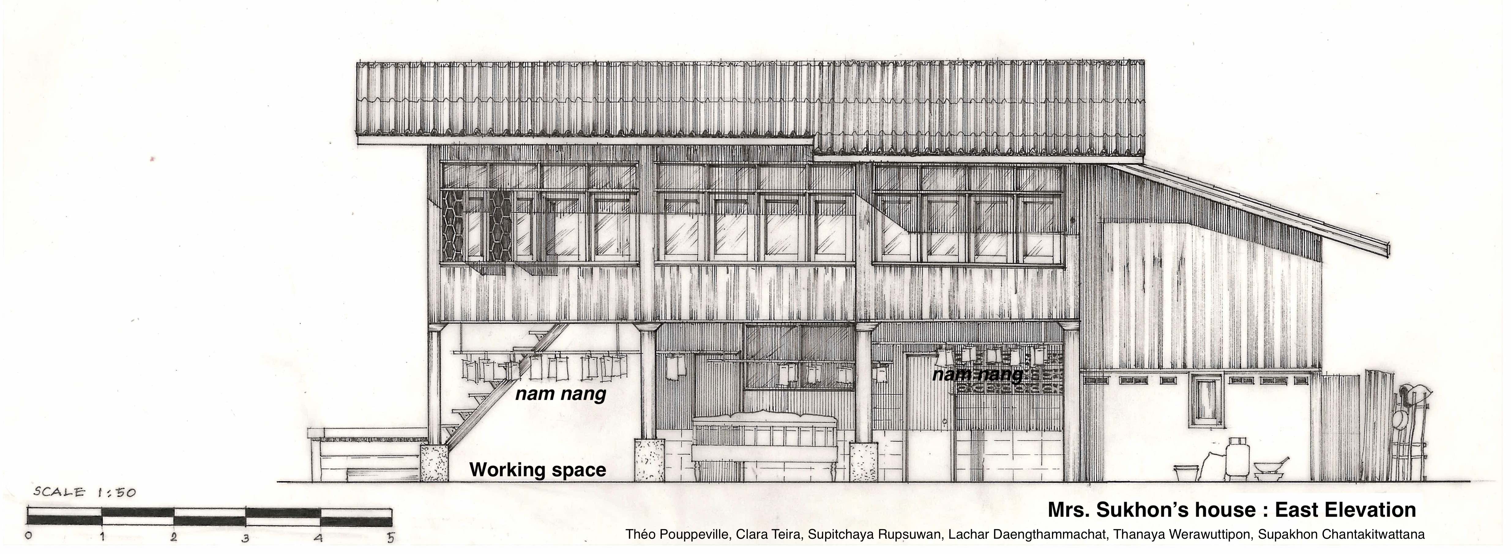 In mid-December, with a map and a drawing board in hand, a group of Franco-Thai students walked through the calm shaded alleyways in Wua Lai neighbourhood. As part of the Spatial Investigation Workshop, they had been asked to conduct a survey on the living space of Wua Lai, to make sketches of the wooden houses and to interview the residents. The schedule of work was very tight, but for them the survey was a break between the first phase of workshop focusing on the analysis of city contexts, and the third phase during which they finalized their spatial project.