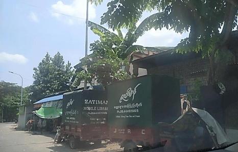 The interesting thing on the street is the presence of “ZaTiMan Mobile Library tricycles”. Those Mobile Libraries are opened by “ZaTiMan” youth readers association based at Shwe Kaung Nyunt ward of Aungmyetharzan Township in Mandalay. Those Mobile Libraries opens at basic education primary schools in Mandalay district with the aim of broadening scope of children, raising reading skills and contributing towards learning skills. The mobile libraries have various subjects of books totalling over 2000. Each library stops over at the schools in Mandalay city, letting students borrow books for up to two weeks, free of charge. In Thingazar Creek Neighbourhood, it is also used to give service to Dhamma halls or Dhammayon called in Burmese (also known as Lecture Hall in Buddhist Temples and Monasteries and the community place for religious festivals of local people) and schools in Neighbourhood. Mobile libraries of the association will provide the readers and students not only with the books but with scrabble sets, chess sport equipment and chairs and tables. But, mobile libraries have not run their service for two years because of the Covid-19 pandemic and current political condition in Myanmar.